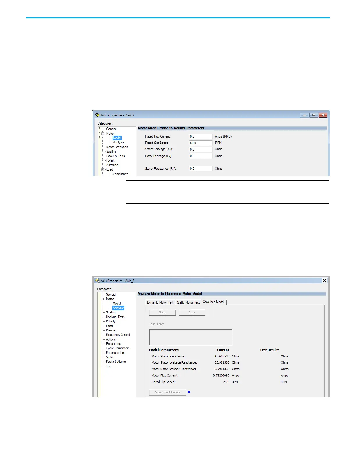 In this example, the Calculate Model test was run. If the Motor > Analyzer test