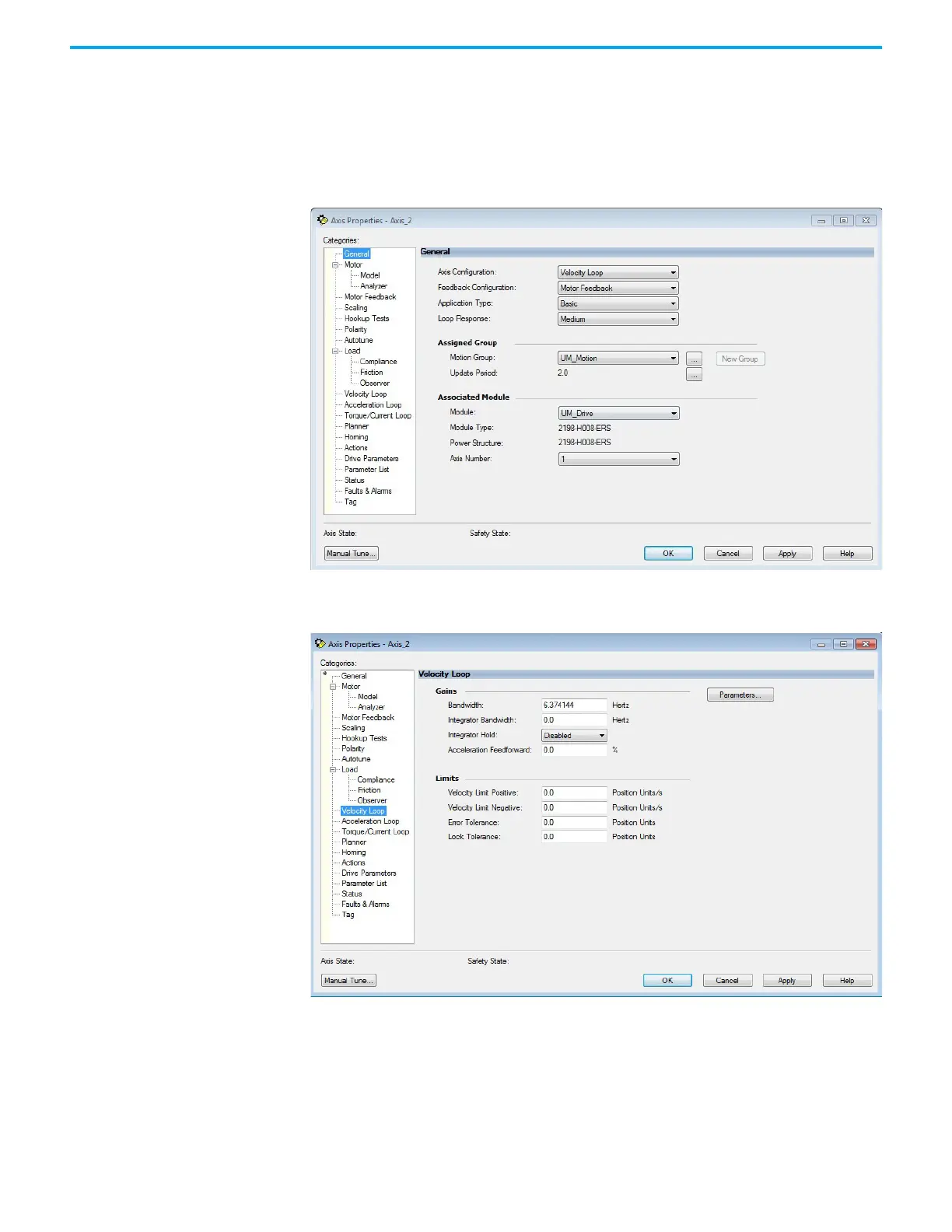 3. From the Axis Configuration pull-down menu, choose Velocity Loop.
