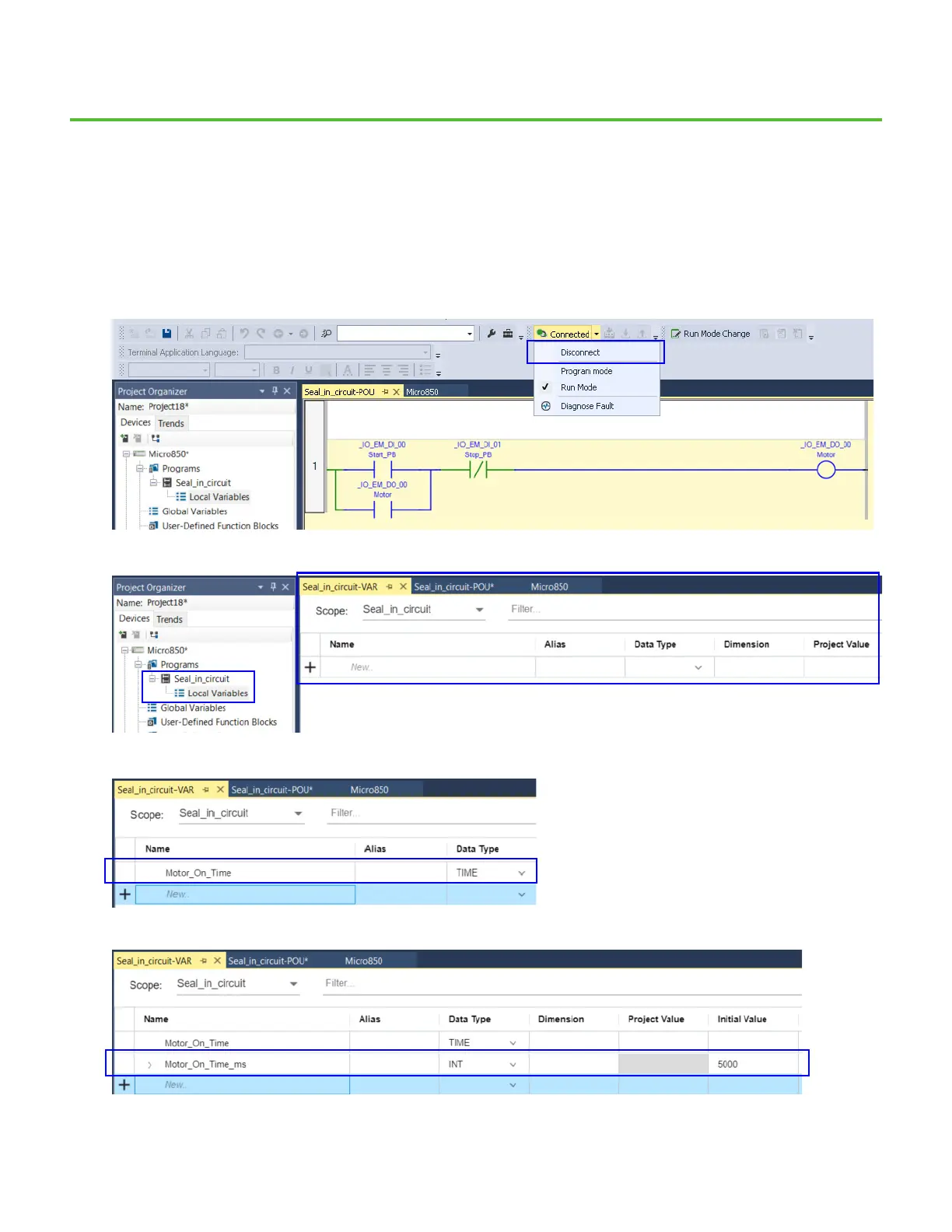 3. Create a variable called Motor_On_Time with the TIME data type.