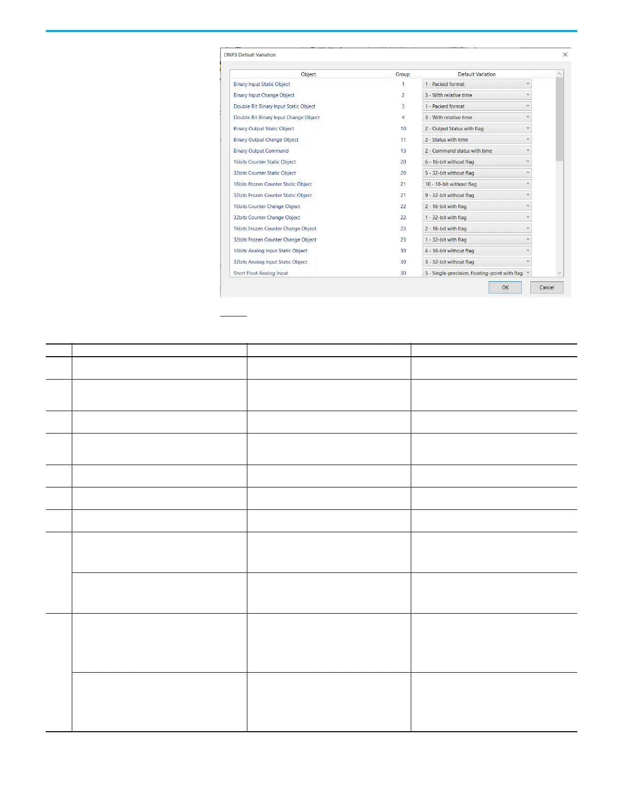 Table 7 shows the structure of the DNP3 Default Variation Configuration File.