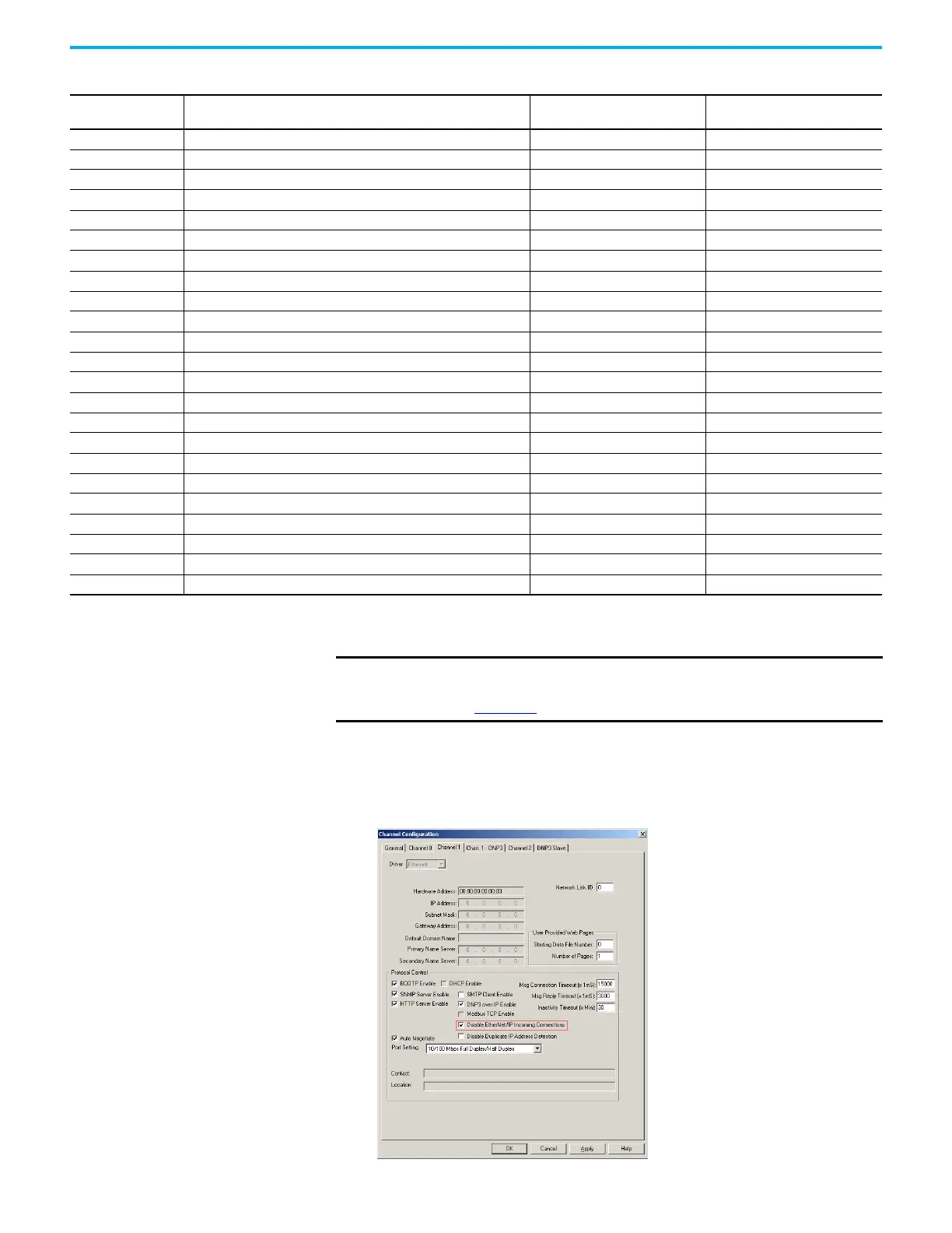 IMPORTANT You cannot disable the EtherNet/IP Incoming Connections if both serial