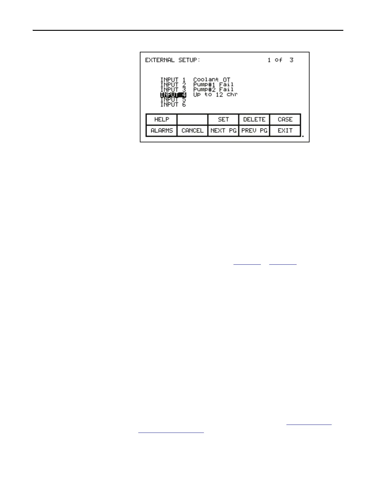 defined to the right of the screen name, i.e. PLC SETUP: INPUTS or PLC