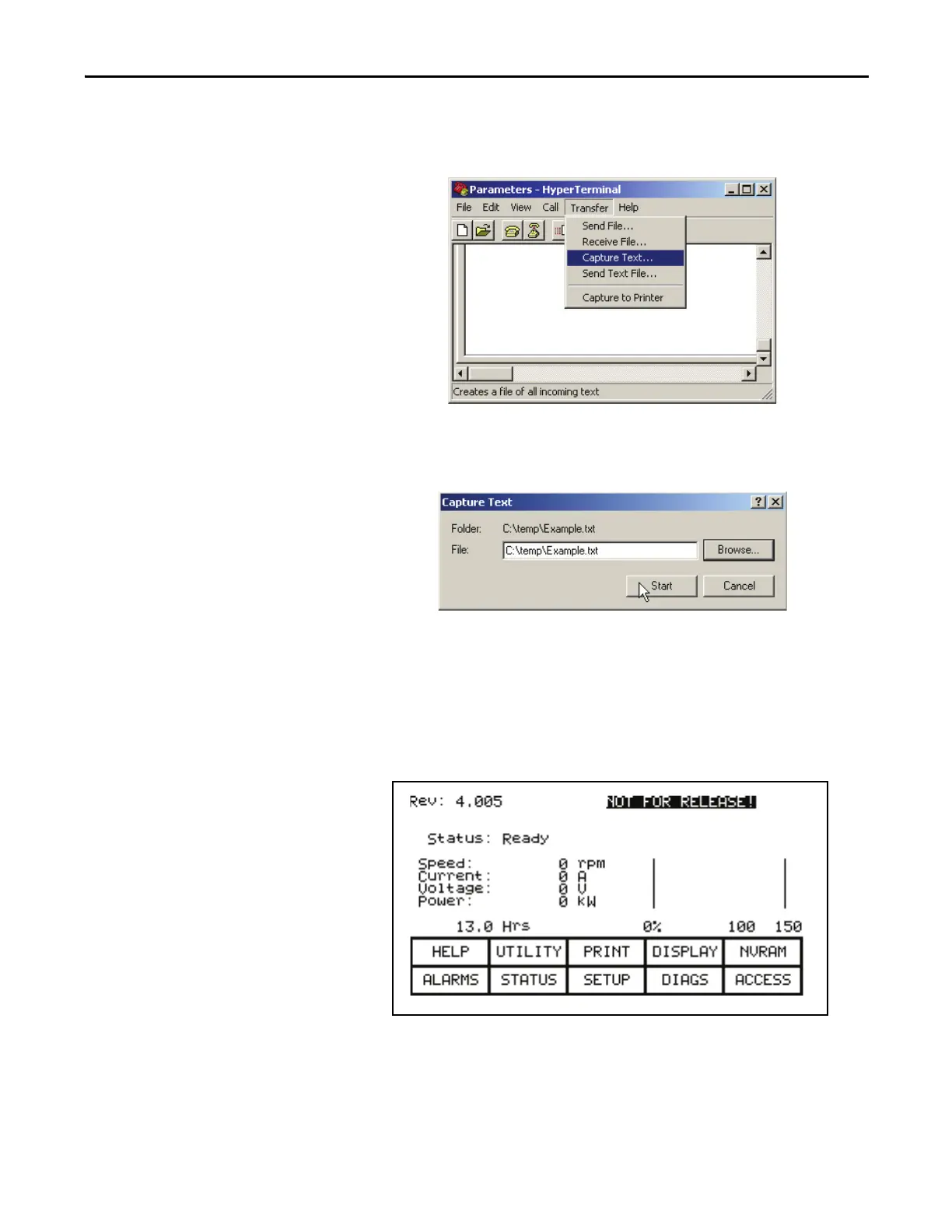 4. From the Tr a ns f er menu, select Capture Text… as shown below.