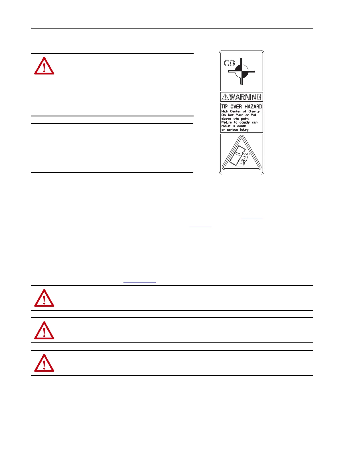high center of gravity and a Tip-over Hazard exists. To guard against death, serious