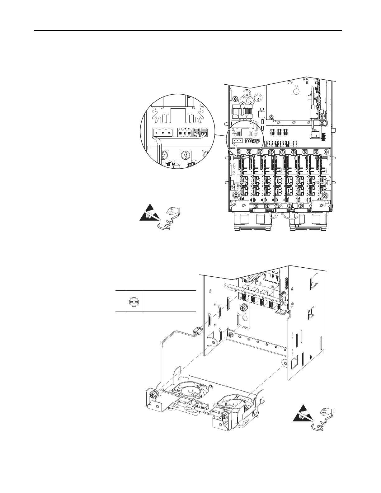 5. Disconnect the two fan power supply connectors from connectors J18 and