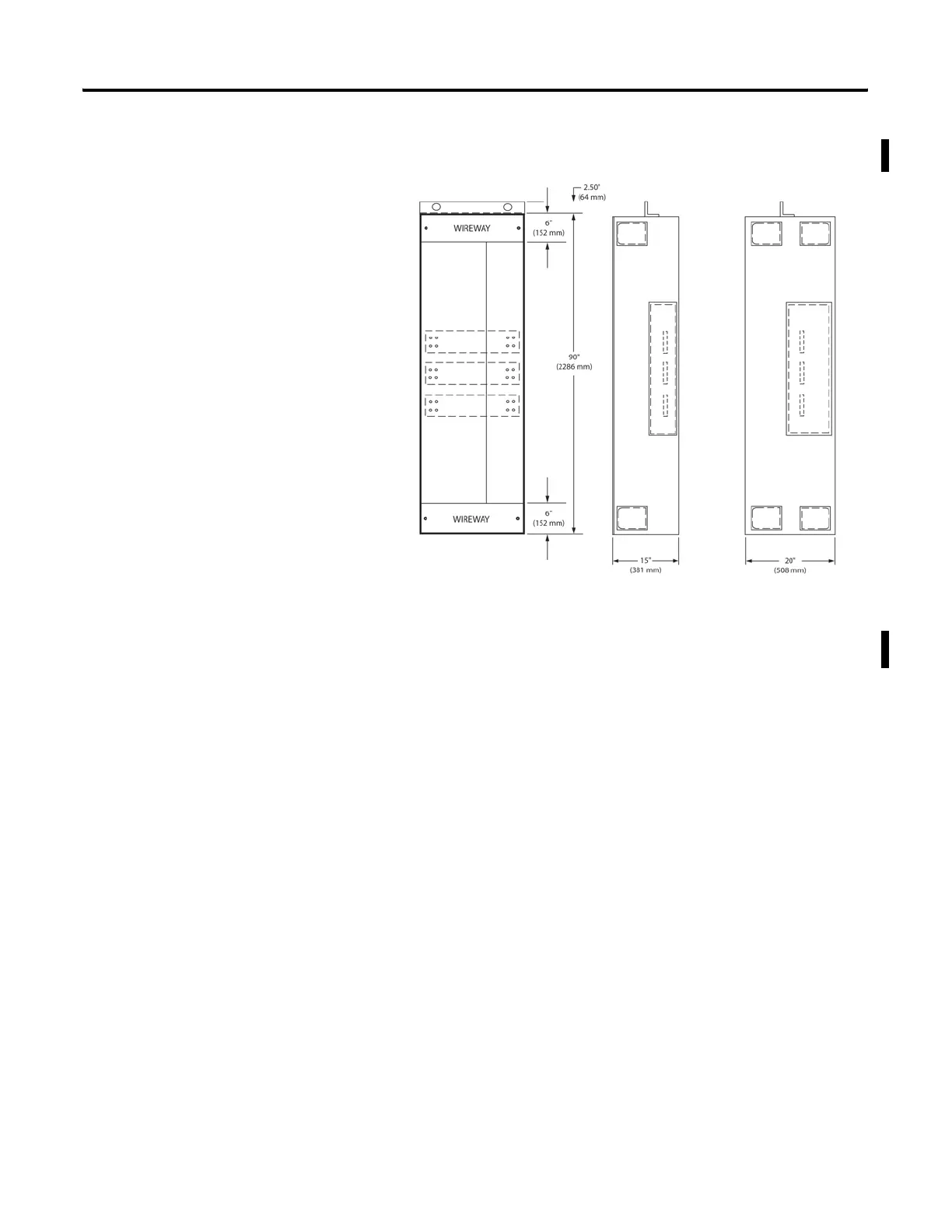 Mounting Dimensions for 25 in. Wide Section with 9 in. (228.6 mm) Wireway [90 in.
