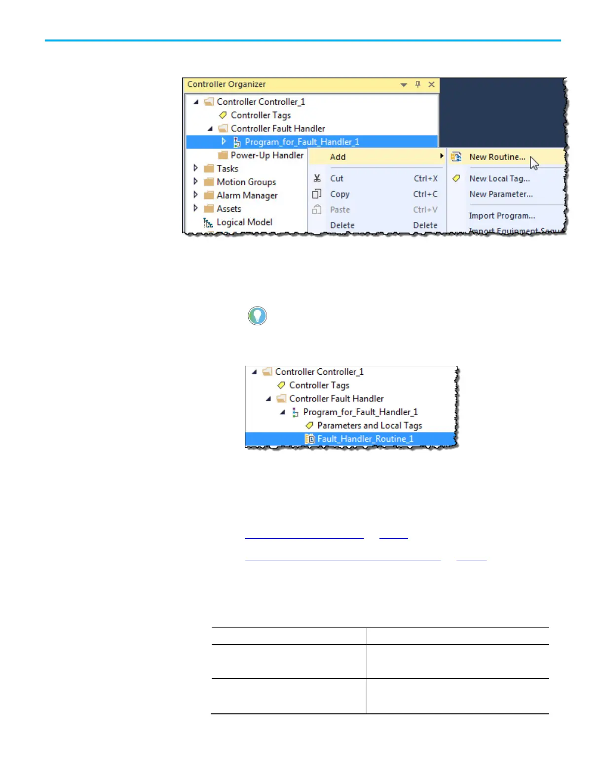 Tip: Even though Fault is an option in the Assignment, assigning the routine as a fault routine within