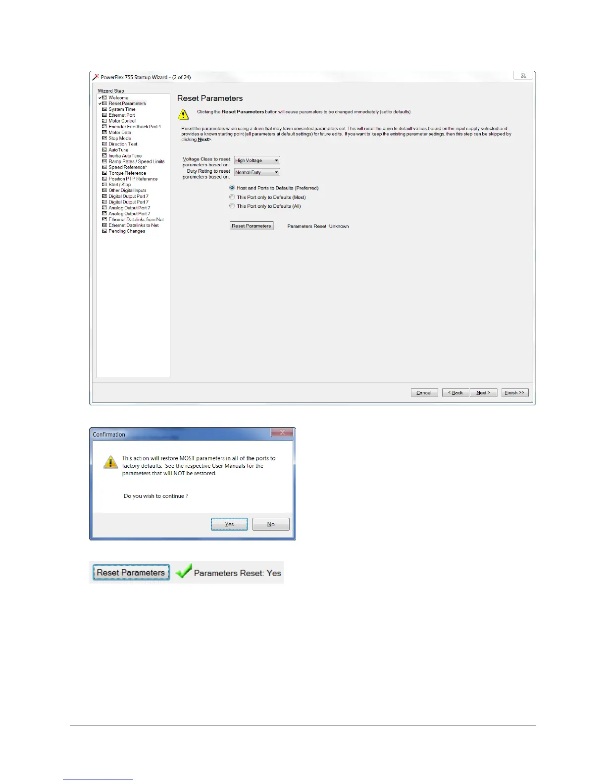 Observe the on screen confirmation of the parameters being reset.