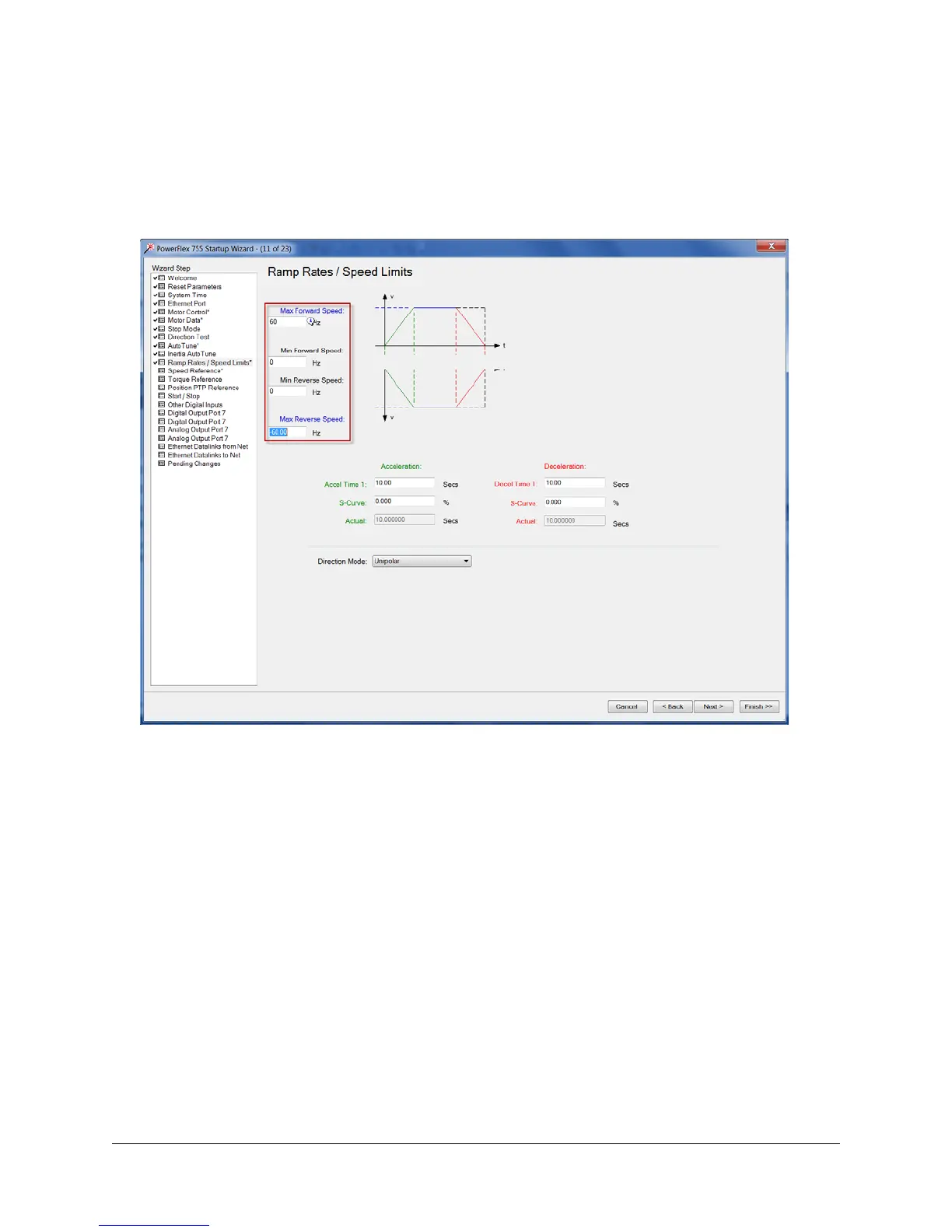 36. The Ramp Rates / Speed Limits step is next. Set the following values:
