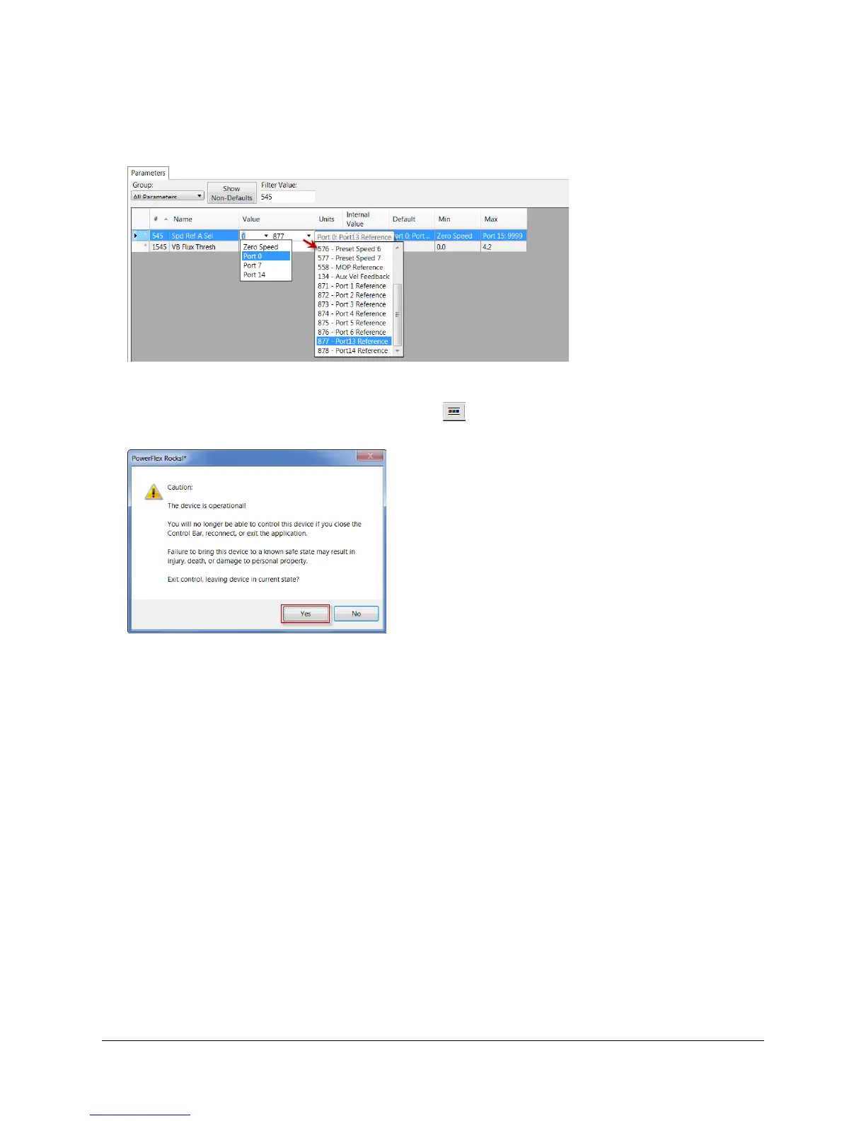 have control of the speed reference, change Port 0 Parameter 545 [Sped Ref A Sel] while the drive is not running. Stop the