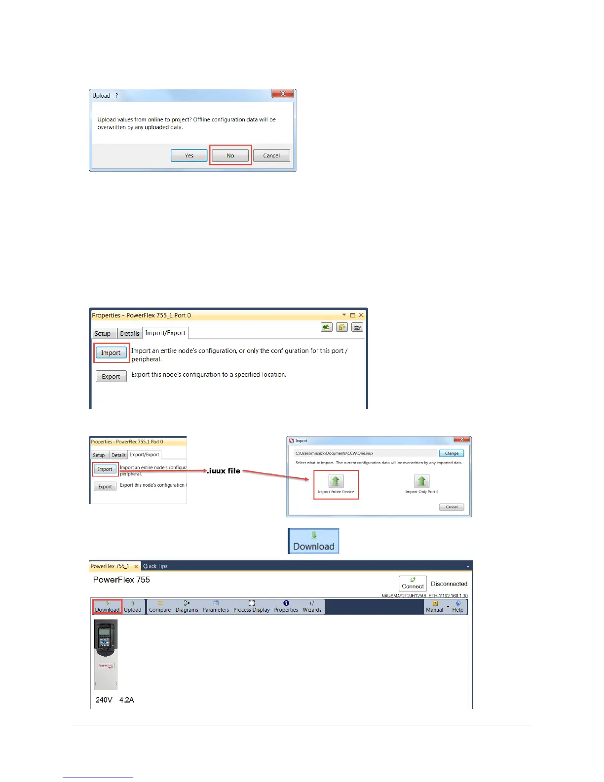 55. Disconnect from the drive and select No when ask to upload values from online to project.