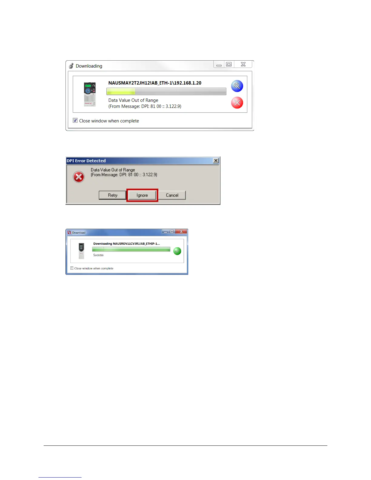 66. During the Download process you may receive warning messages. If you see this “Data Out of Range” message, Click