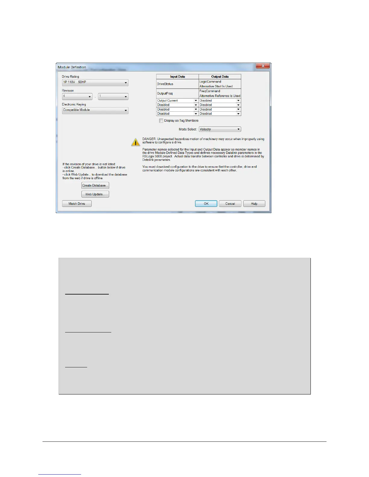 Select the Drive Rating, set the Revision of the drive firmware, and set the Electronic Keying