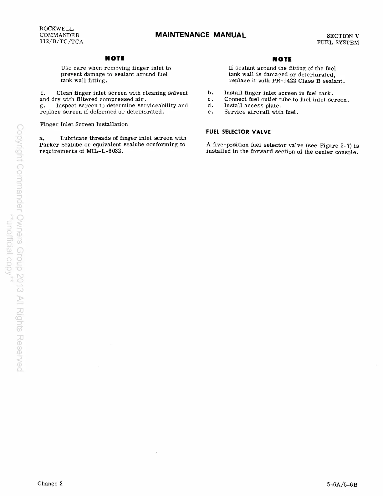 Rockwell Commander 112 - Fuel Selector Valve