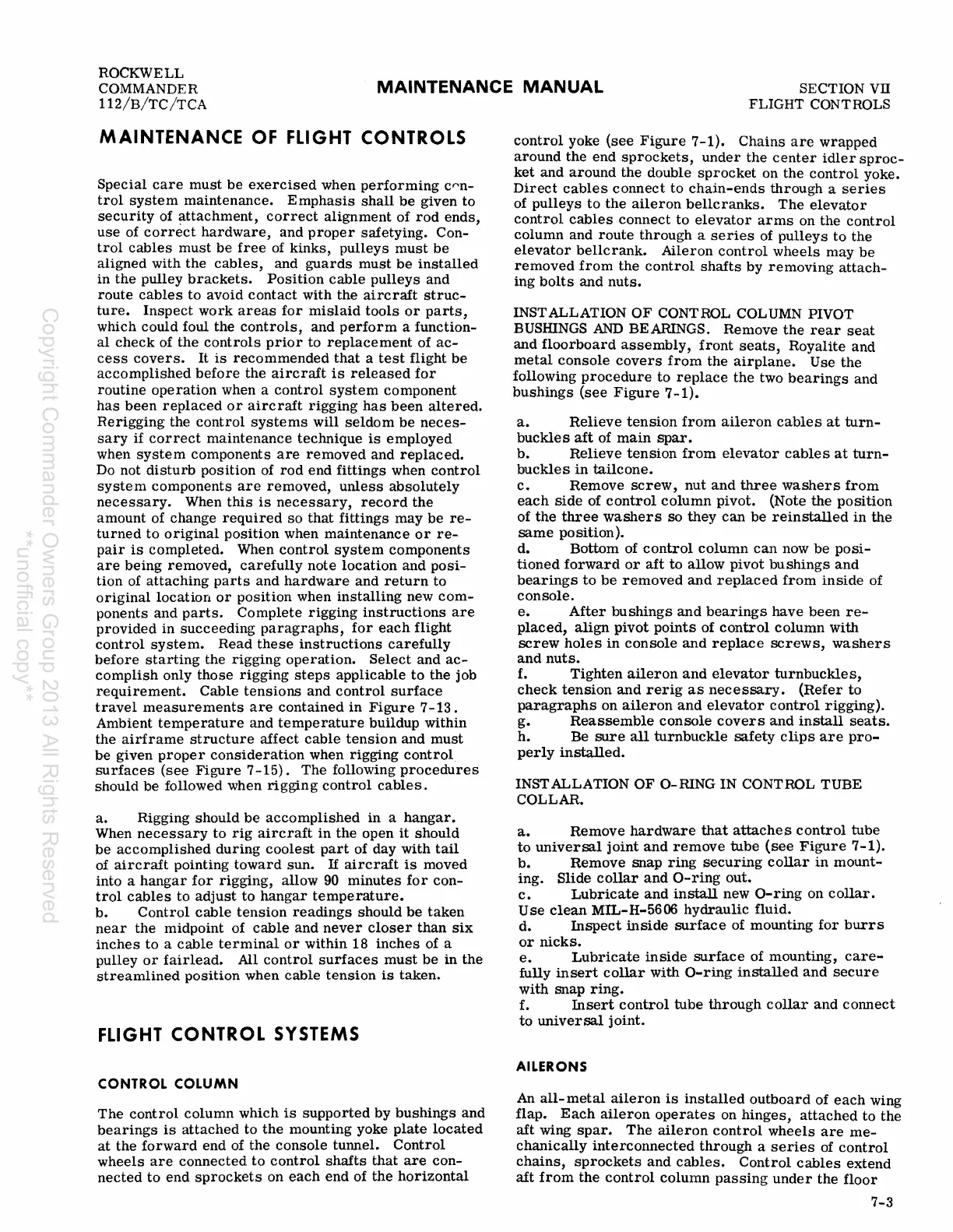 Rockwell Commander 112 - MAINTENANCE OF FLIGHT CONTROLS; FLIGHT CONTROL SYSTEMS