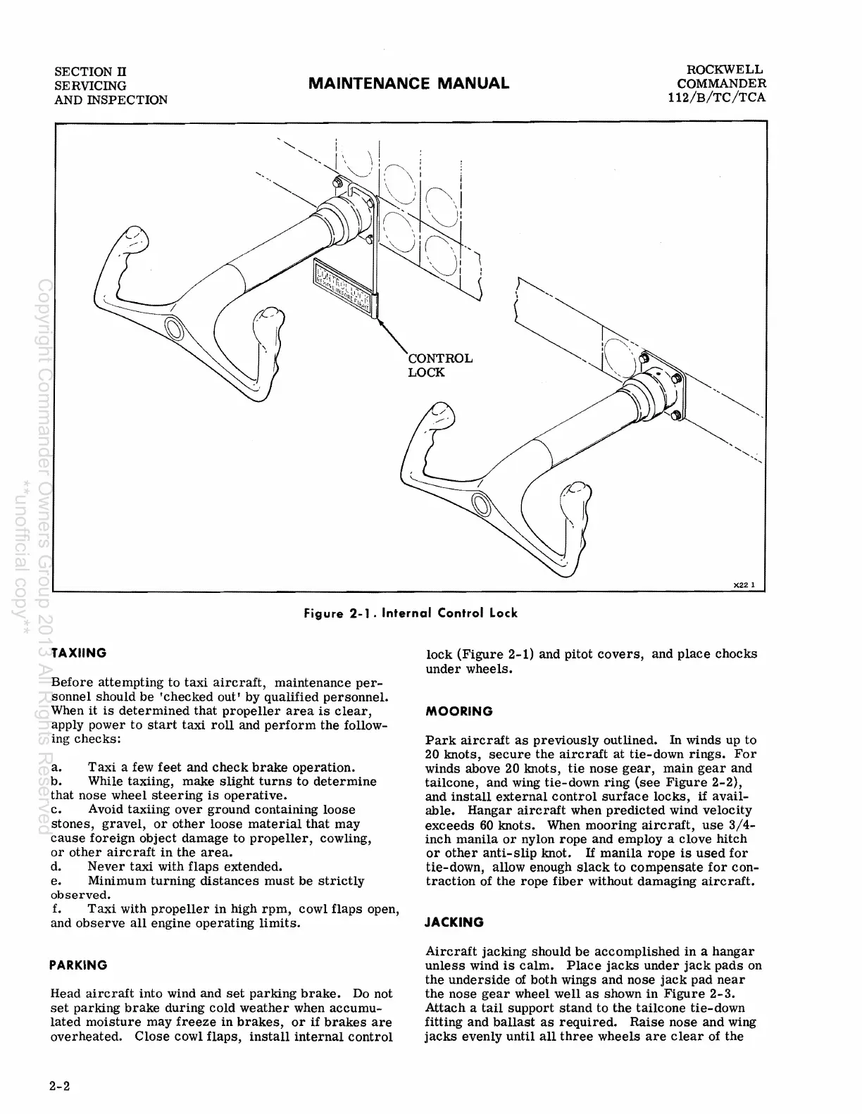 Rockwell Commander 112 - Jacking; Mooring; Parking; Taxiing