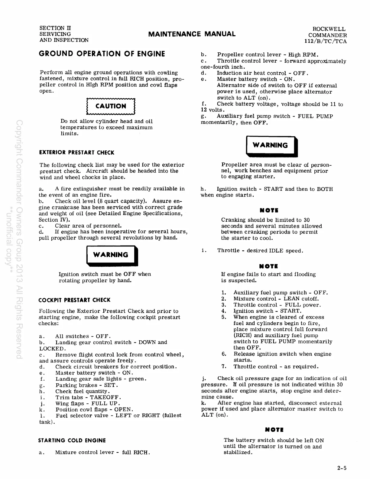 Rockwell Commander 112 - GROUND OPERATION OF ENGINE