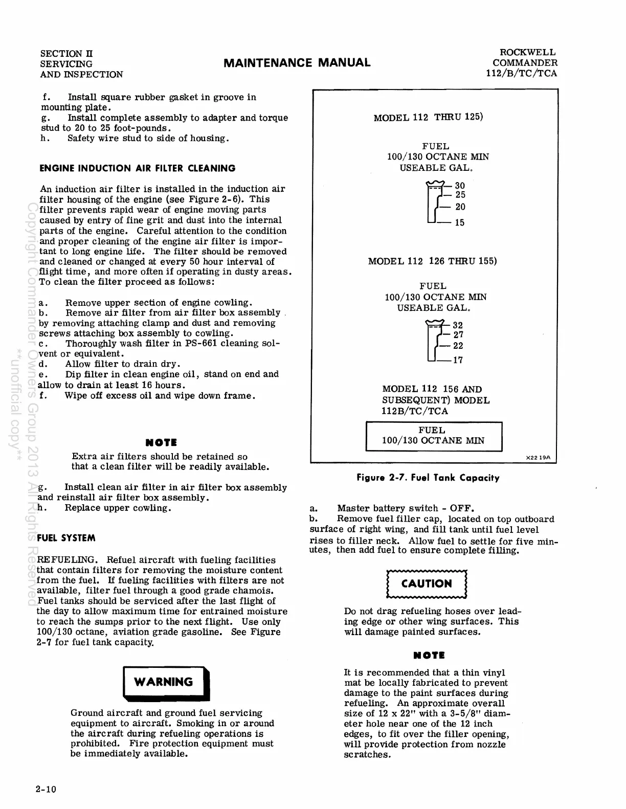 Rockwell Commander 112 - Engine Induction Air Filter Cleaning; Fuel System