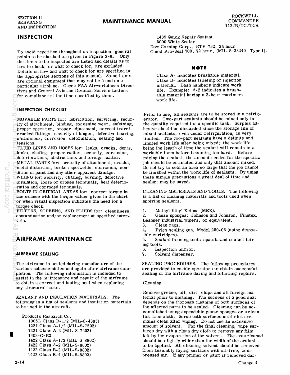 Rockwell Commander 112 - AIRFRAME MAINTENANCE