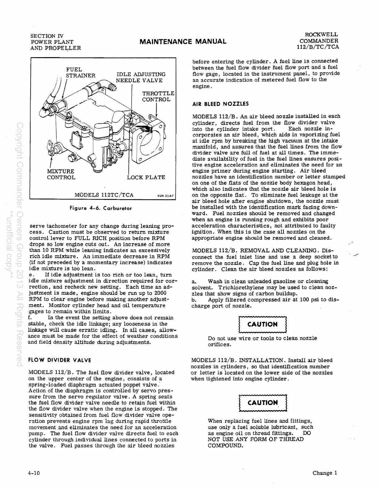 Rockwell Commander 112 - Air Bleed Nozzles; Flow Divider Valve