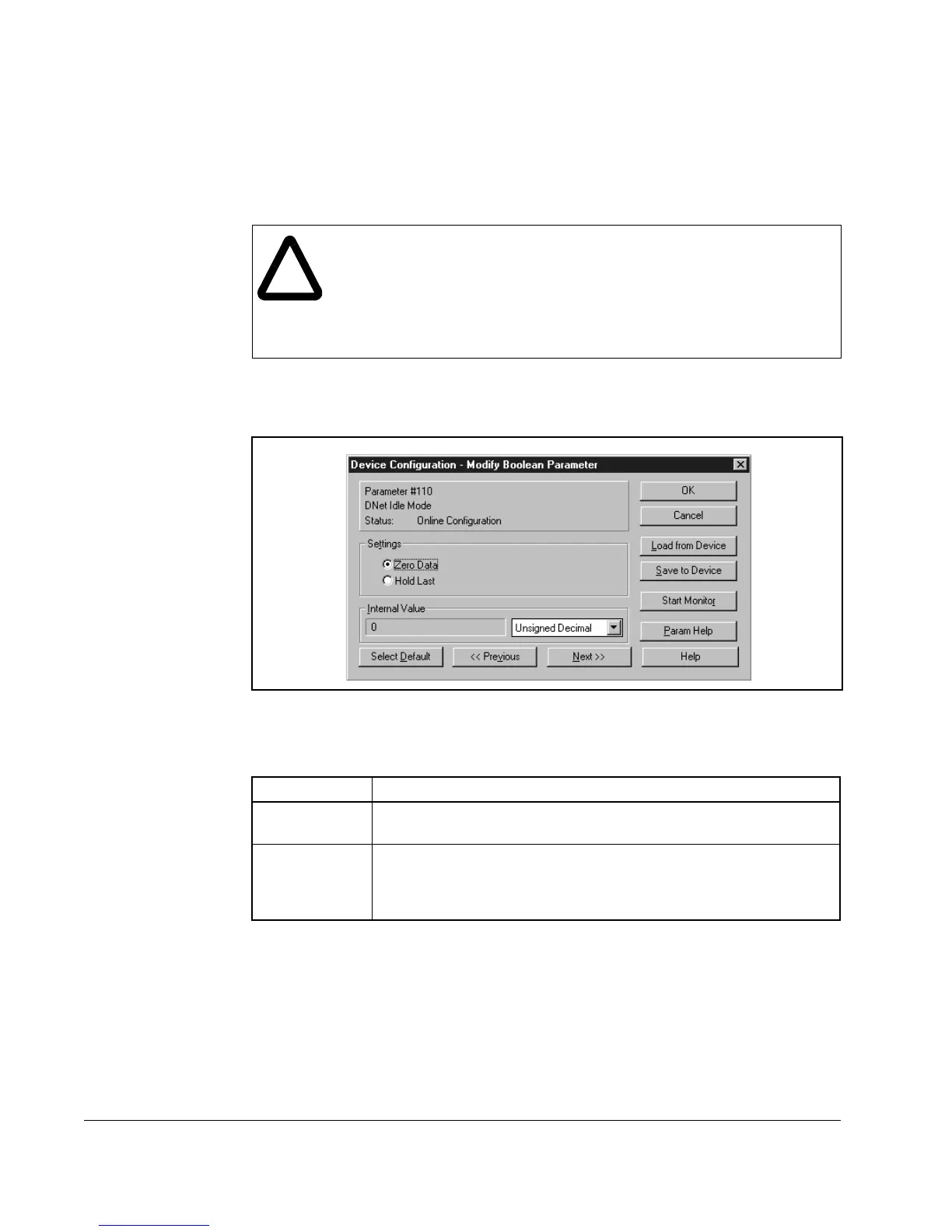 ATTENTION:Parameter 110 [DNET IDLE MODE] determines the action