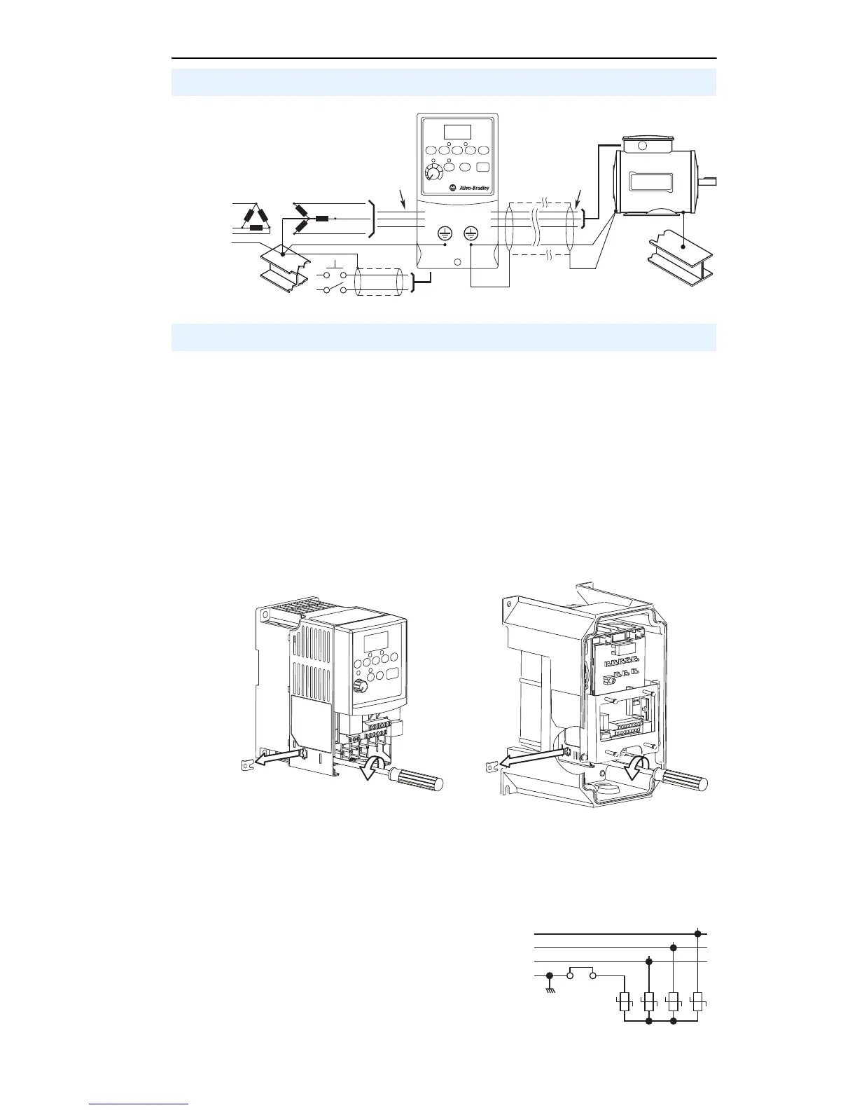 disconnected if the drive is installed on an ungrounded distribution