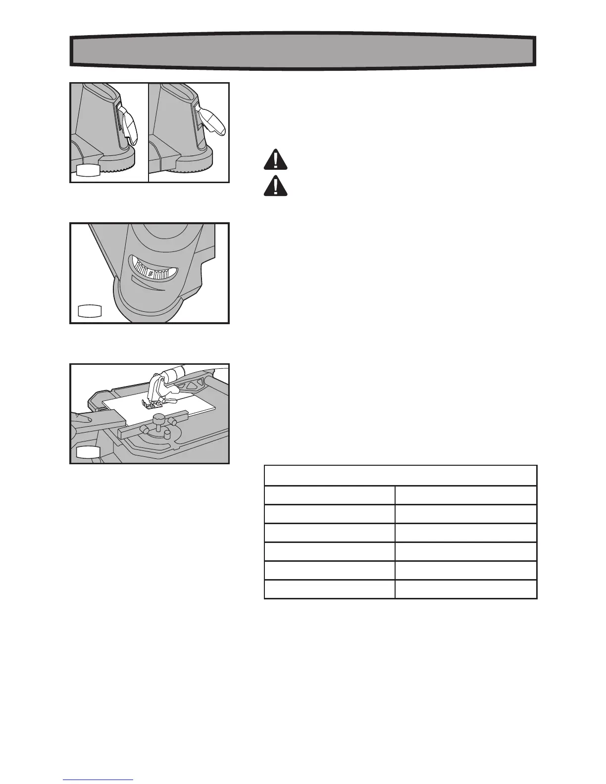 according to material thickness and blade specification to be used.