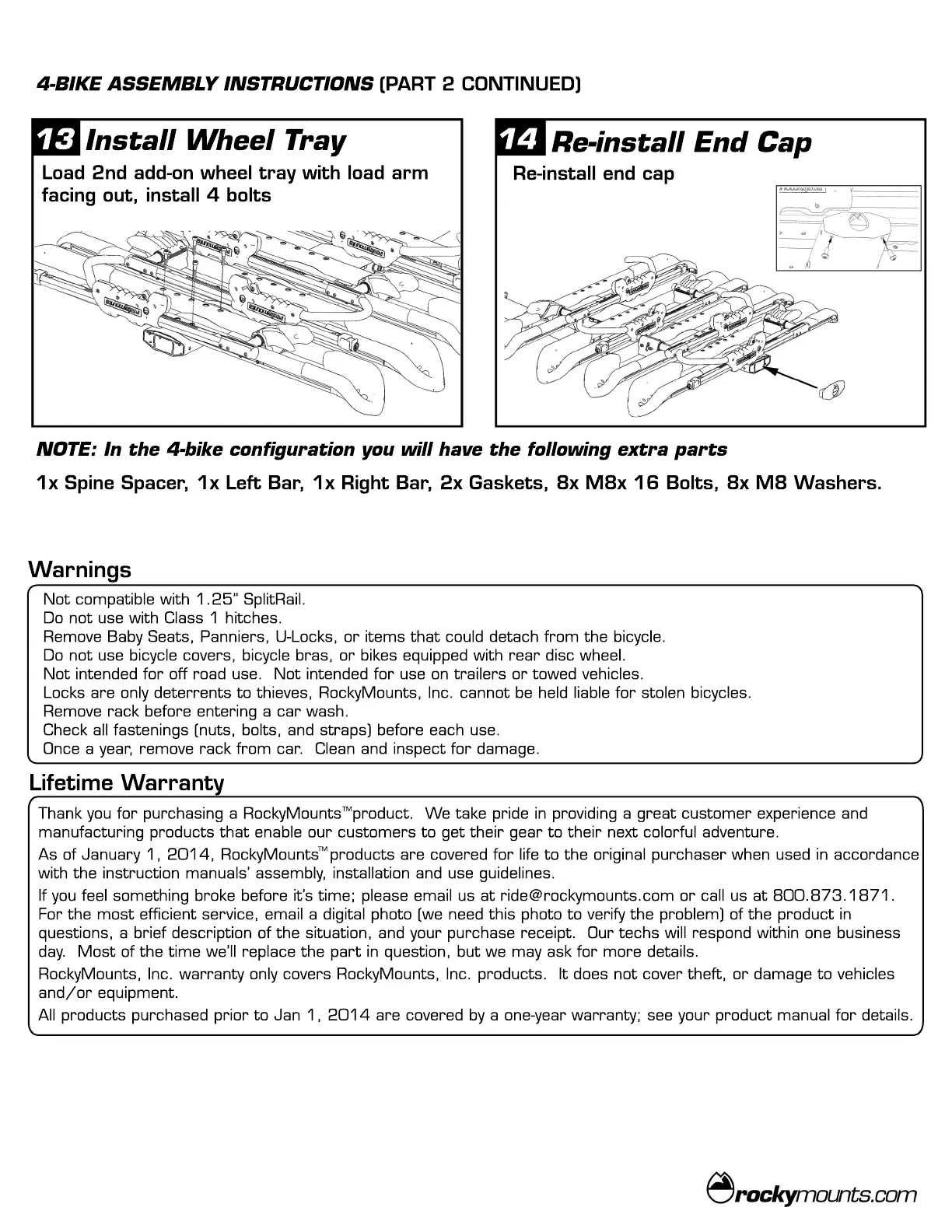 If you feel something broke before itās time; please email us at ride@rockymounts.com or call us at 800.873.1871.
