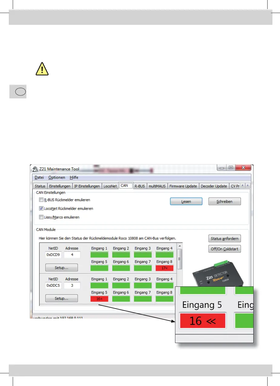 Note: only possible via the CAN-BUS and with at least maintenance version 1.12 and Z21