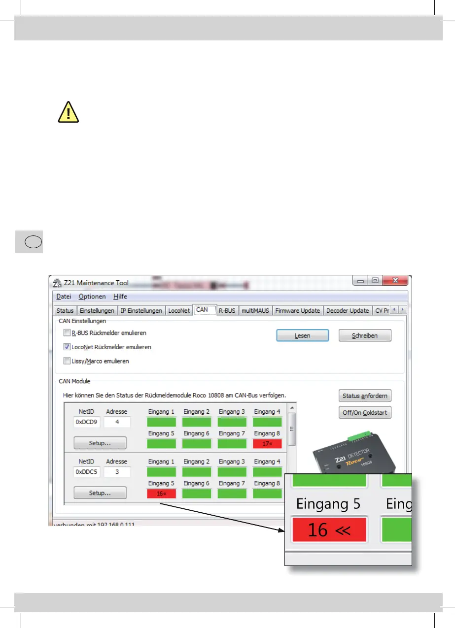 Si vous avez raccordé correctement le détecteur Z21 et que vous cliquez dans la colonne CAN sur le