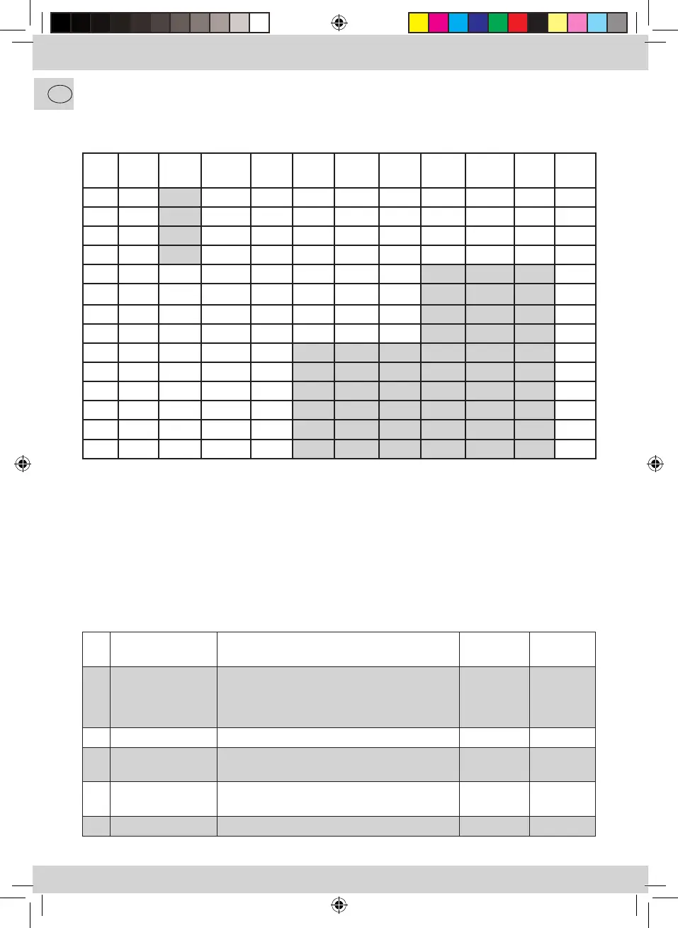 Die in der Tabelle fett markierten Zahlen geben die Werkseinstellungen wieder, die Sie auch in der rechten