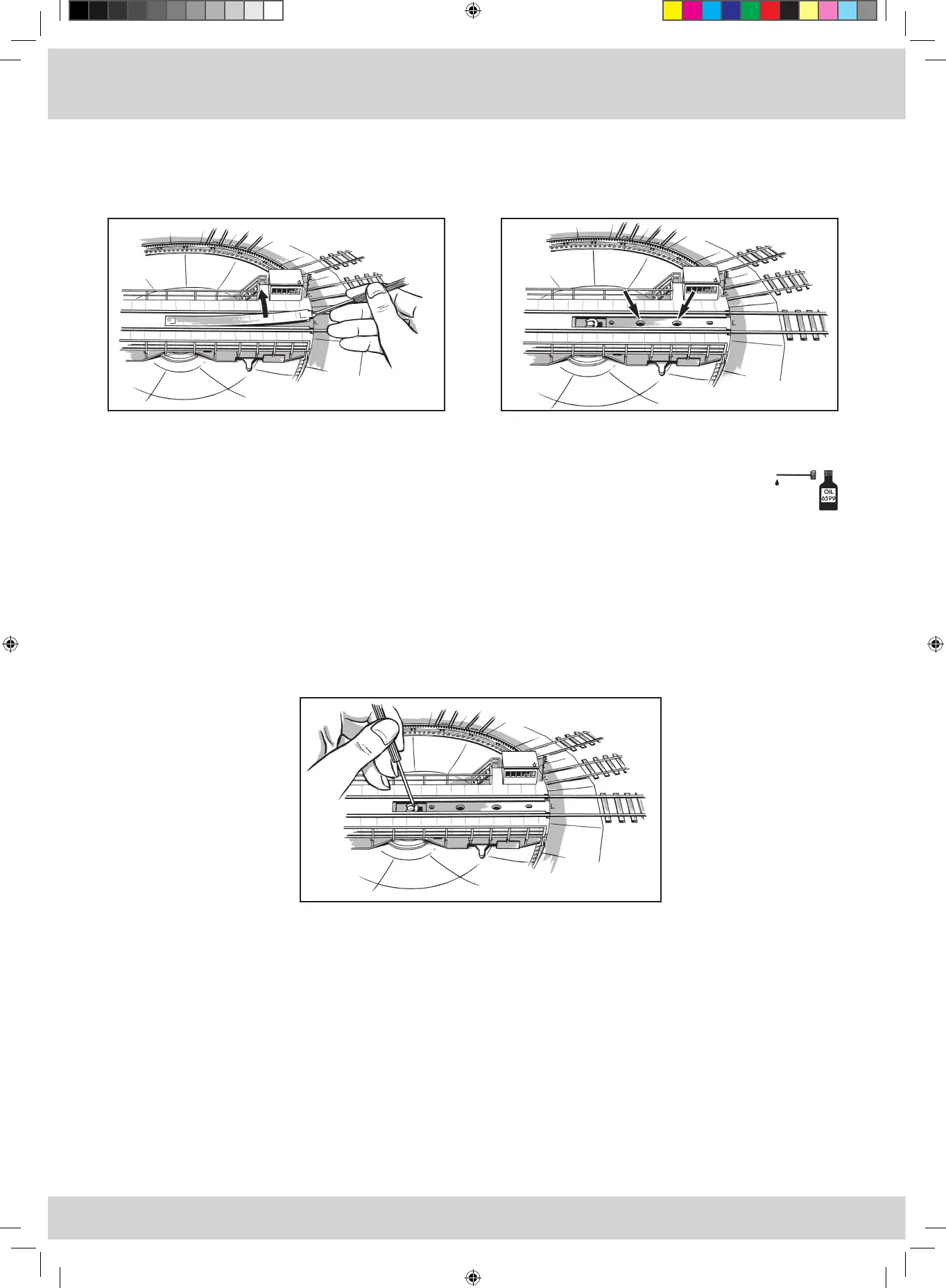 Teilstücke entfernt (siehe Bild 10). Jetzt kann die Bühne in diesen Ausschnitt gedreht und herausgehoben werden. Die Kontaktbahnen neben den Drehzapfen