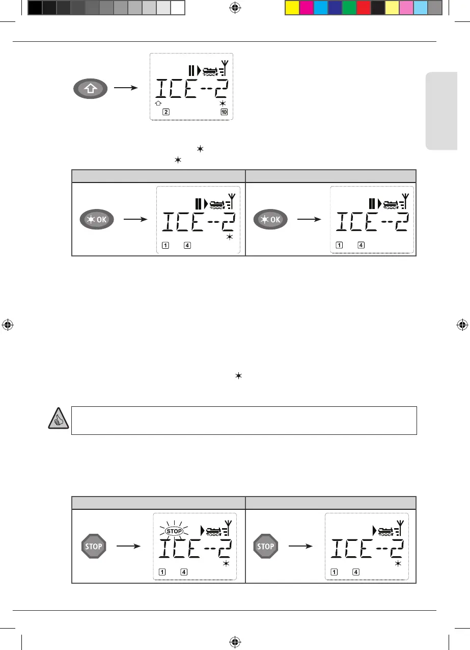 „STOP“-Symbol blinkt. Sie müssen lediglich die STOP-Taste drücken, um den Fahrbetrieb wieder auf-