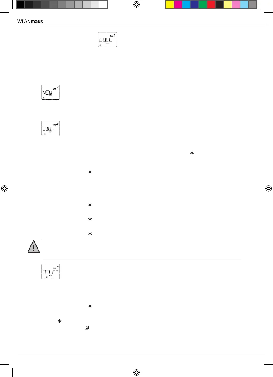 The WLANmaus uses the “LOCO” menu to manage all data which is required for the locomotive library