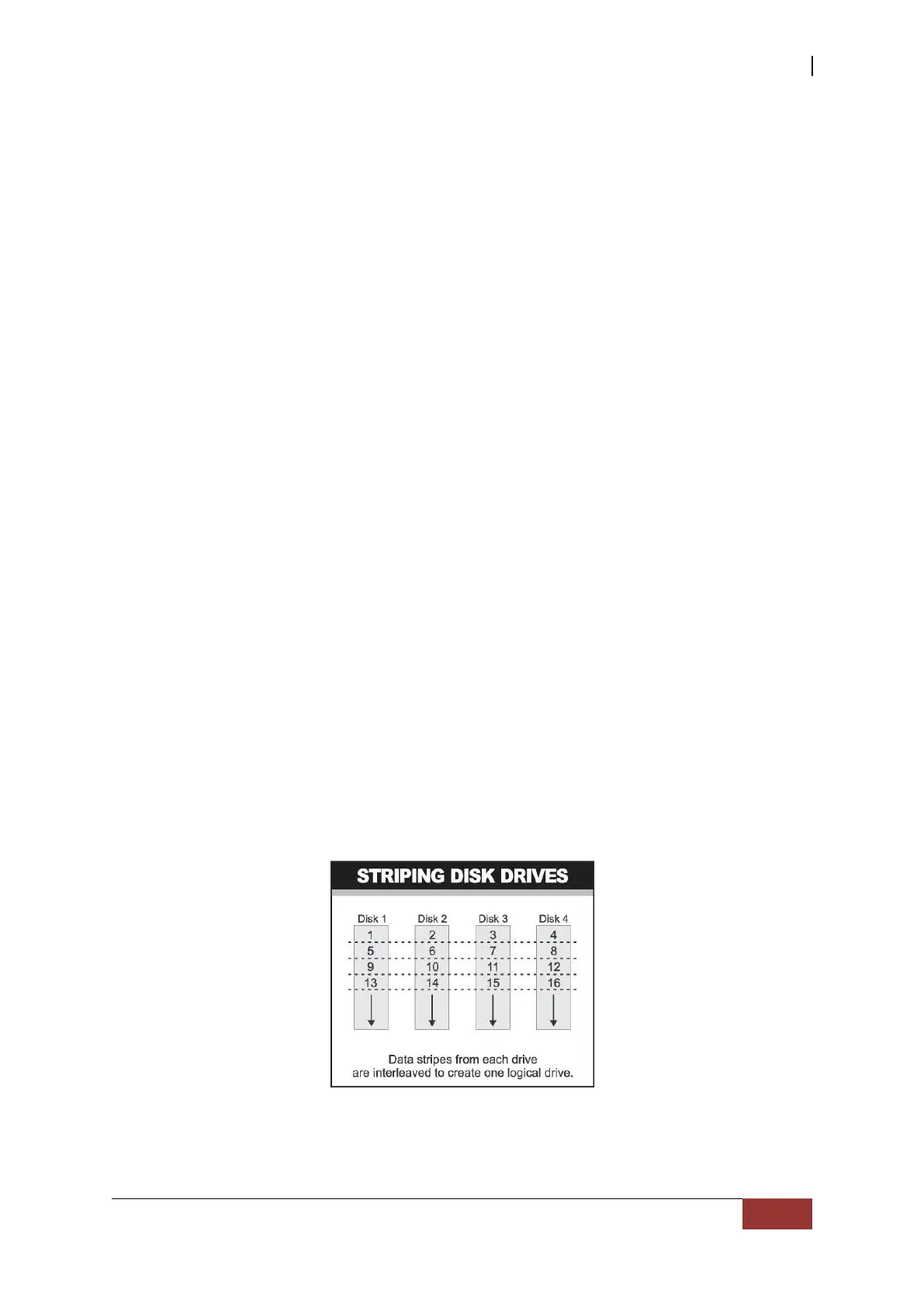 into one logical storage unit. Striping partitions the storage space of each drive into stripes,