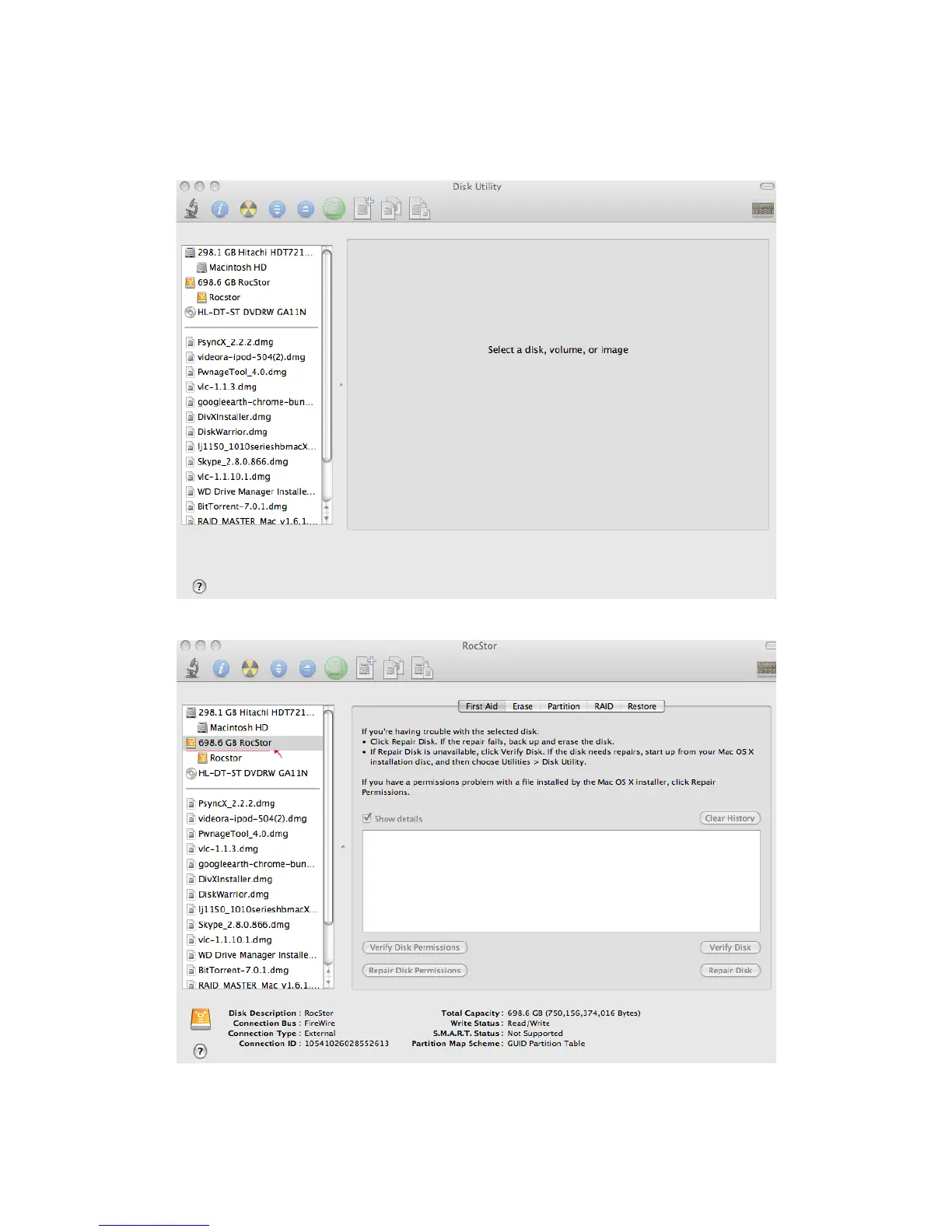 show as Rocstor drive. Click on the icon showing the disk capacity (figure 5.1.)