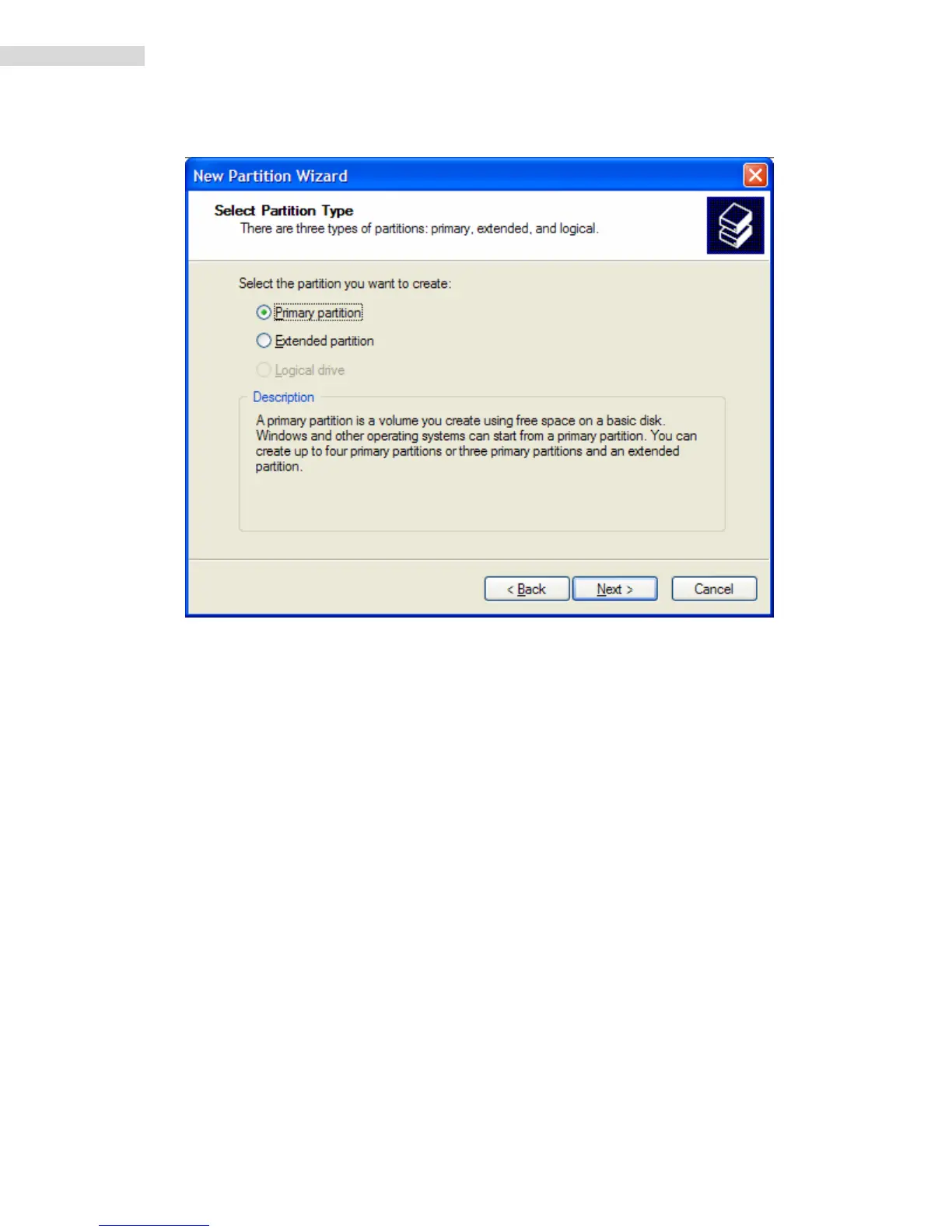 8. Clickon“Primarypartition”(itshouldbeselectedasthedefaultpartition).Click“Next”.