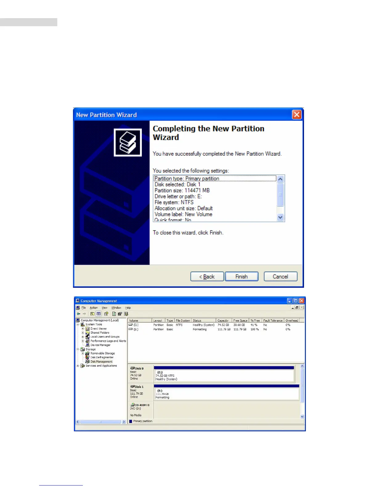 14. Younowreachedthe“CompletingtheNewPartitionWizard”screen.Itdisplaysthe
