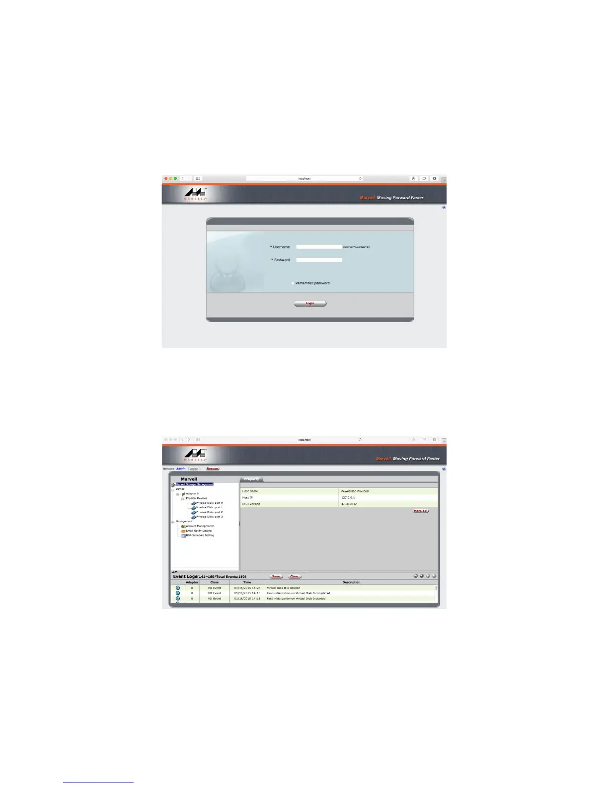 Marvel Storage Management: Host Name, IP address and MSU version. Device: RAID configurations and