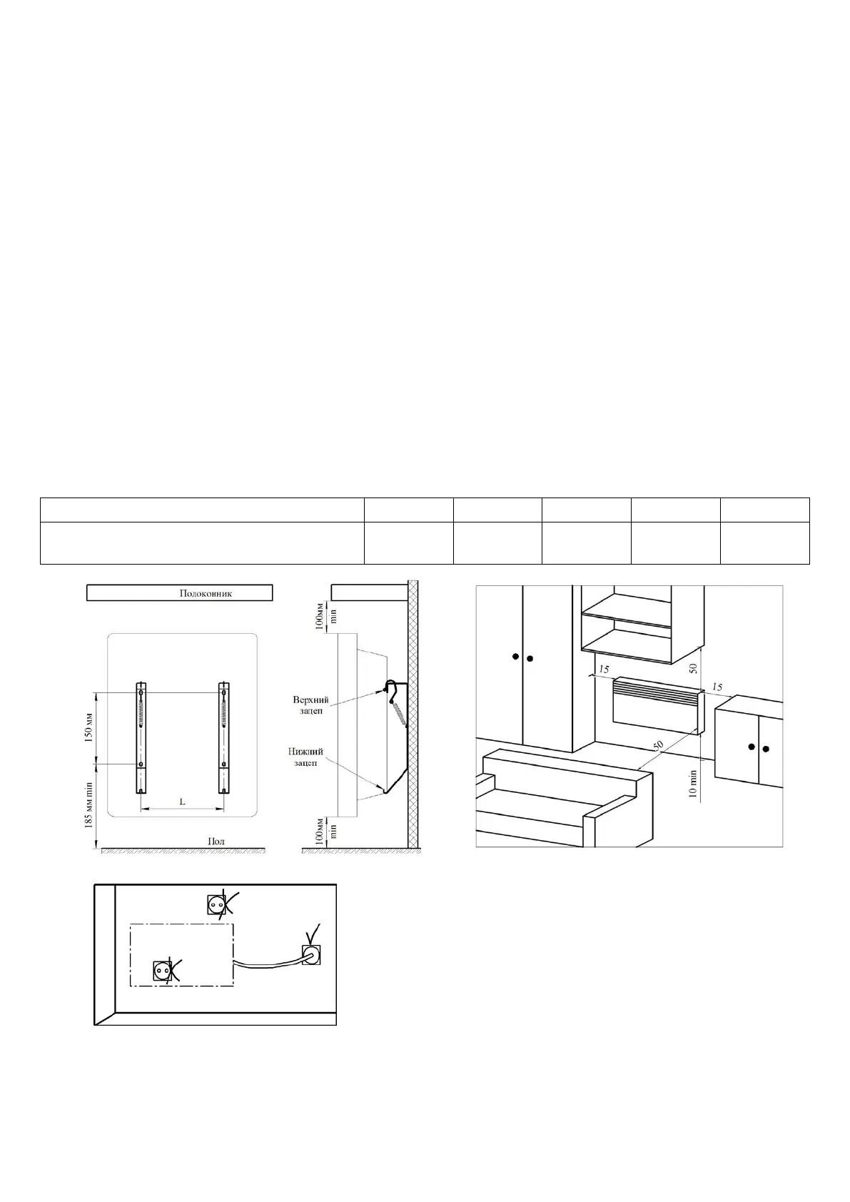 крепление конвектора в течении всего срока эксплуатации. Минимальные расстояния от поверхностей