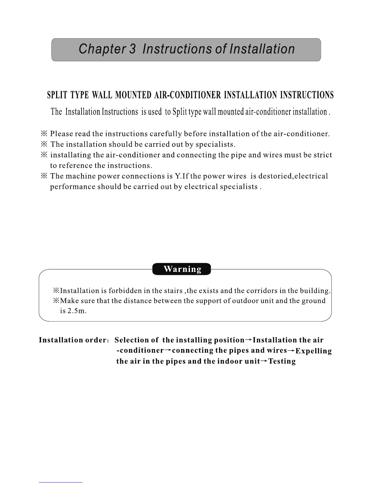 Roda RU-S07A - Air Conditioner Installation Guide; Installation Overview and Warnings