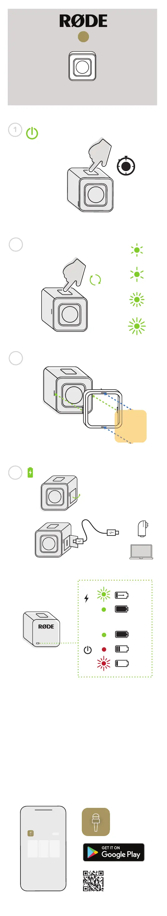 RODE Microphones USB-C Vlogger Kit - MicroLED Quickstart Guide; Power On MicroLED; Adjust Brightness Levels; Change Color Temperature