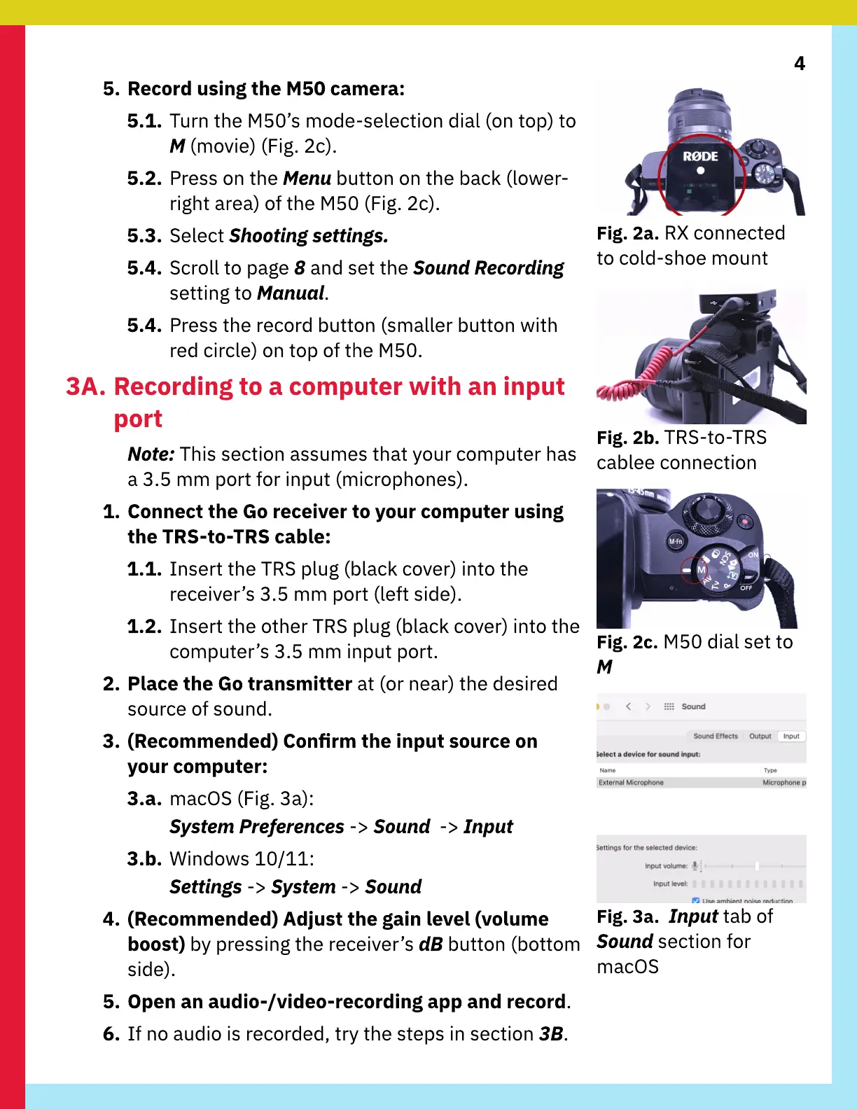5. Record using the M50 camera: