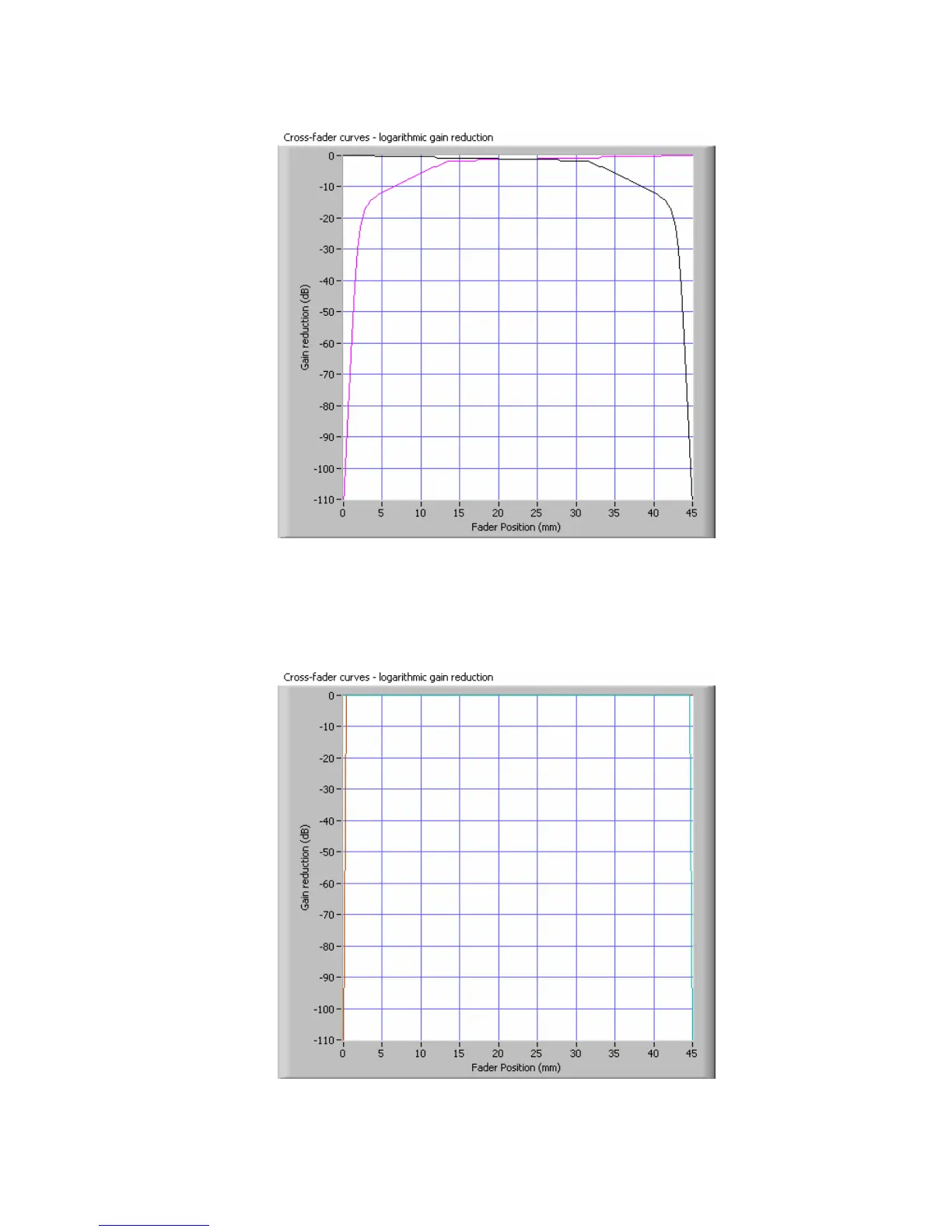 When the curve potentiometer is turned to the right, the cross fader will react very fast, with the