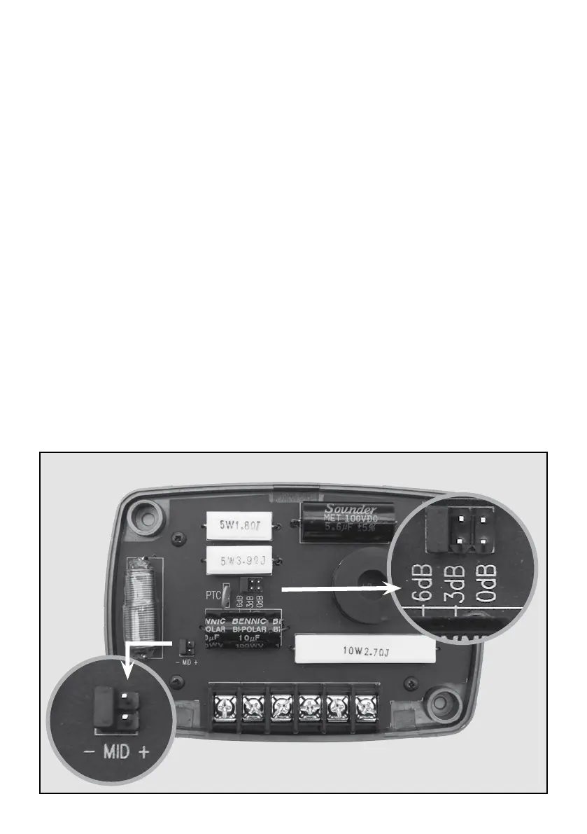 Der Jumper auf der Frequenzweiche erlaubt drei verschiedene Pegeleinstellungen für den