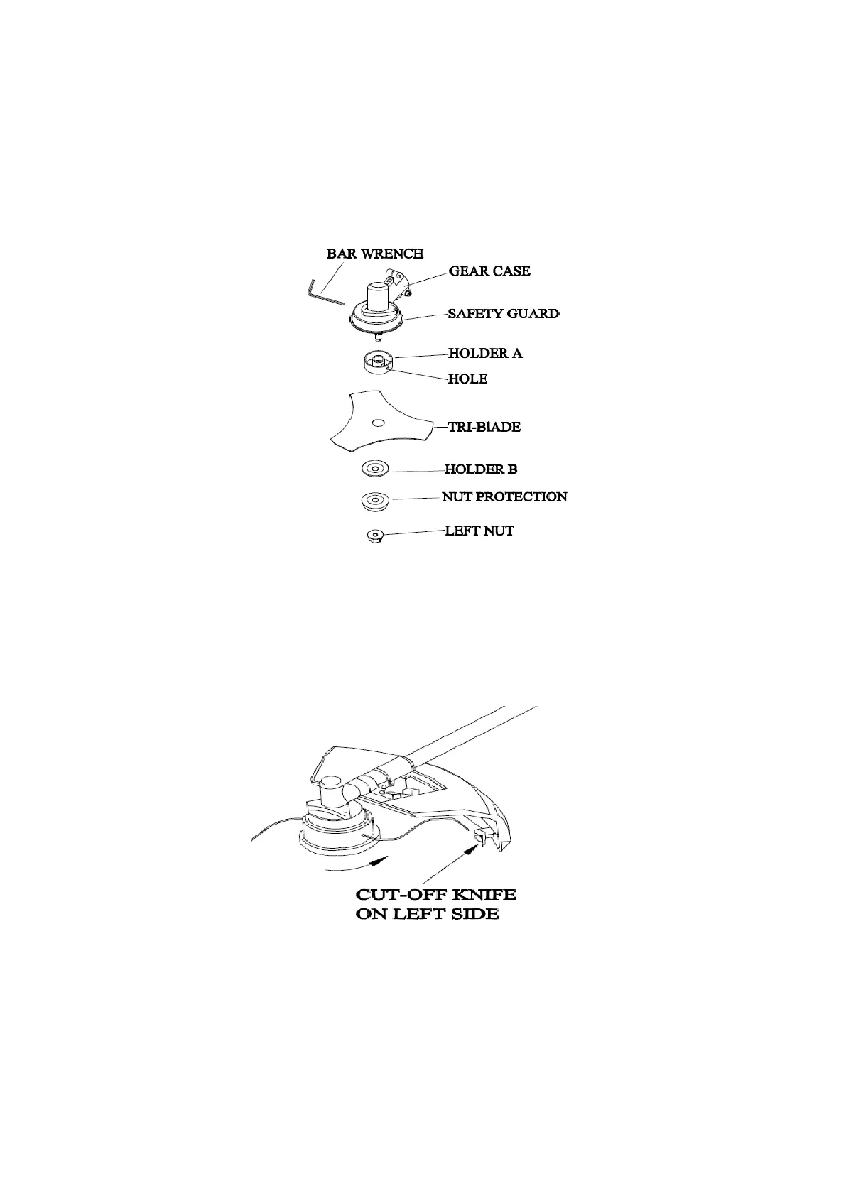 ключом 4 мм. Вращающеюся лезвию с фиксированной гайкой вместе с штепсельной