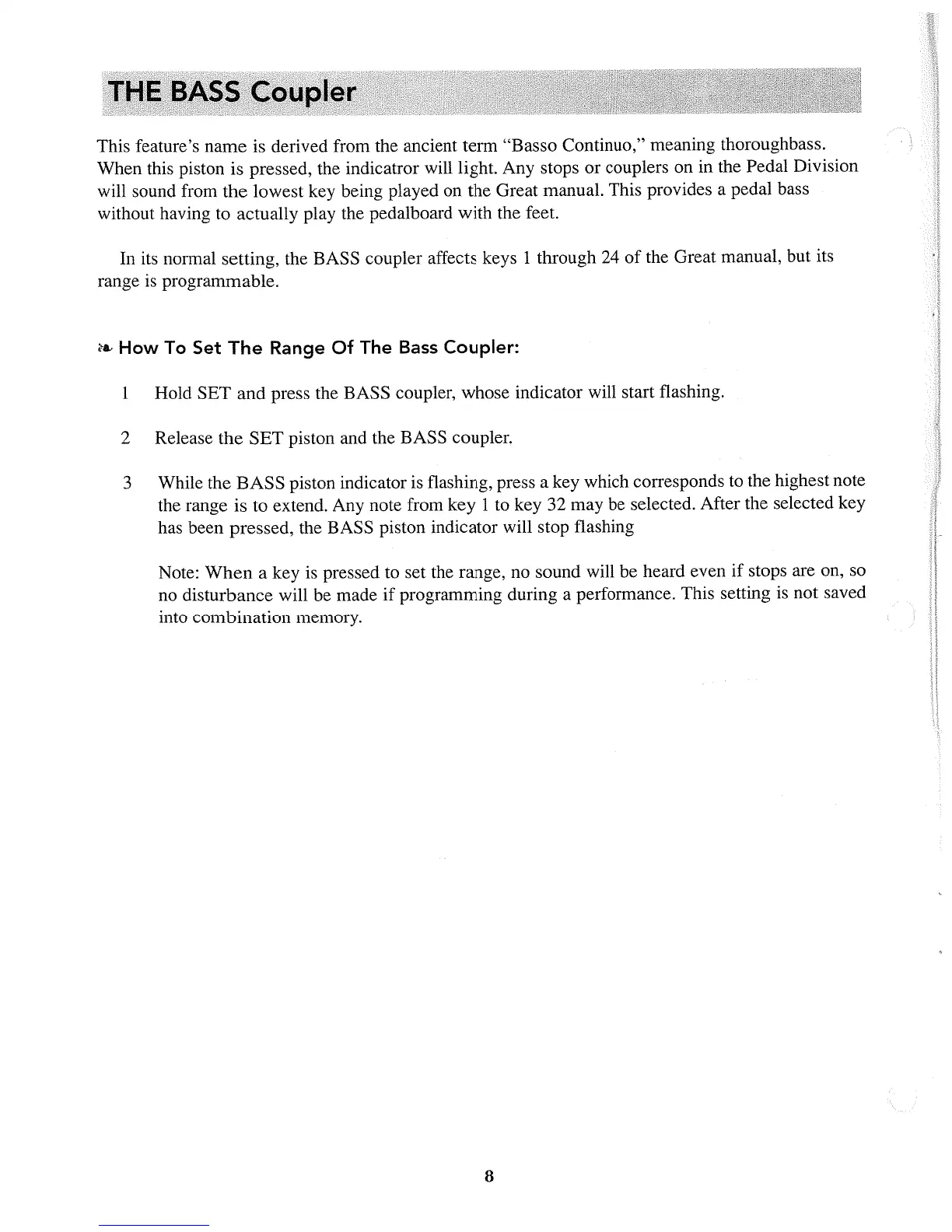Rodgers 525 - BASS AND MELODY COUPLERS; BASS COUPLER FUNCTION; MELODY COUPLER FUNCTION