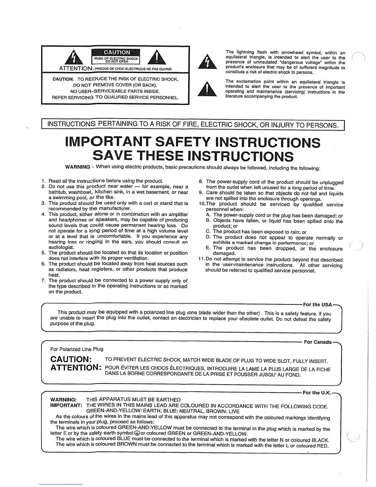 Rodgers 525 - IMPORTANT SAFETY INSTRUCTIONS