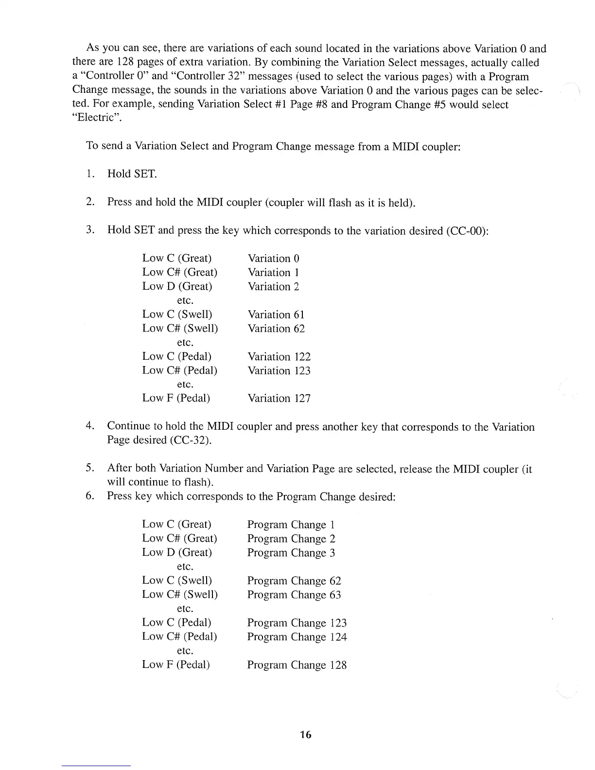 Rodgers 525 - MIDI SETTINGS AND LOCAL CONTROL; HOW TO SET PG;SYS-EXE; LOCAL ON;OFF CONTROL