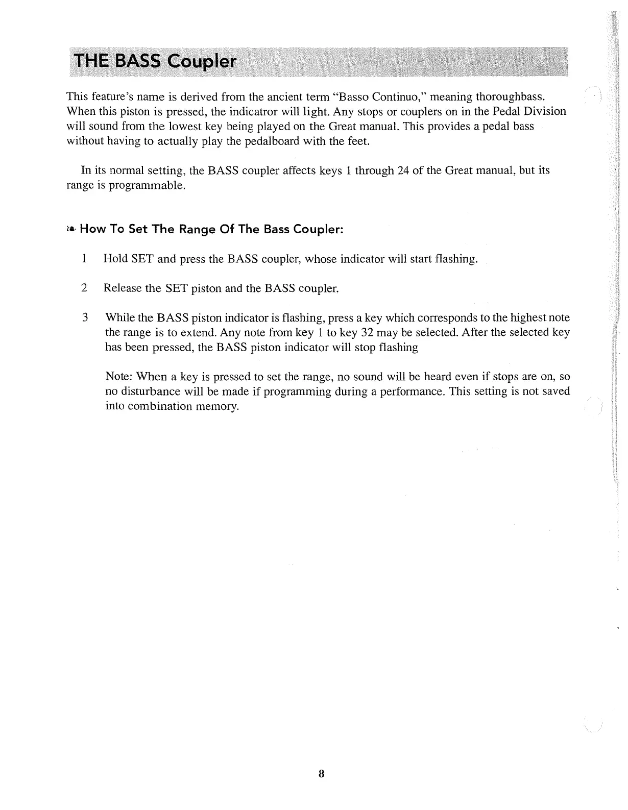 In its normal setting, the BASS coupler affects keys 1 through